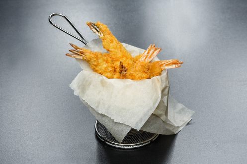Креветки тигровые, кляр, сухари, соус сладкий чили. итоговый внешний вид может отличаться от фотографий на сайте