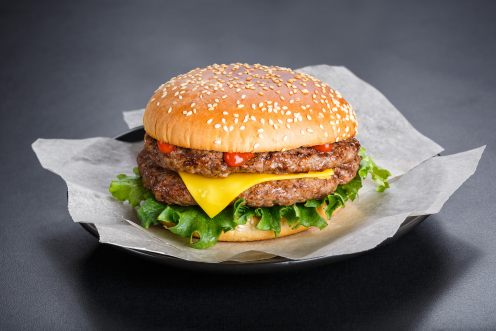 Булочка с кунжутом, два бифштекса из свинины или говядины, сыр чеддер, маринованные огурчики, лист салата, карибский острый соус. итоговый внешний вид может отличаться от фотографий на сайте