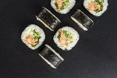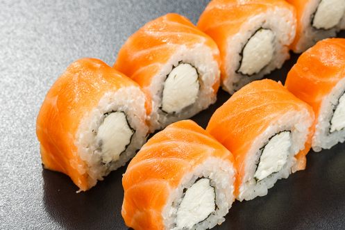 Сливочный сыр, лосось, 8шт *Данный сет в акциях и скидках не участвует, кроме скидки на самовывоз 10%. итоговый внешний вид может отличаться от фотографий на сайте.