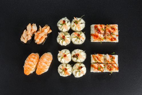 Хрустим с лососем, запеченный с лососем, запеченный с тигровой креветкой 24шт. *Данный сет в акциях и скидках не участвует. Итоговый внешний вид может отличаться от фотографий на сайте.