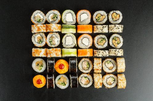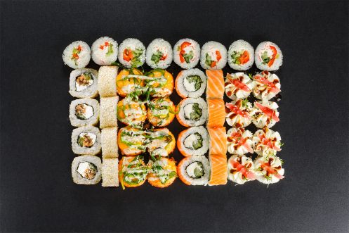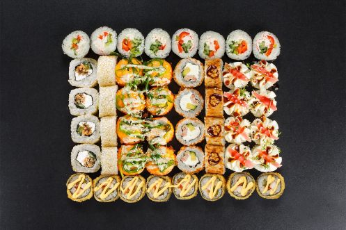 Ролл запеченный с чукой, ролл Филадельфия Баланс, ролл Римский, ролл с тунцом и сыром, ролл Чикаго, 40 шт *Данный сет в акциях и скидках не участвует. Итоговый внешний вид может отличаться от фотографий на сайте.