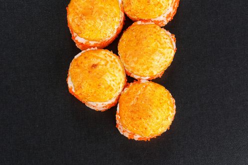 сыр сливочный, тигровая креветка, соус лава с крабом. итоговый внешний вид может отличаться от фотографий на сайте