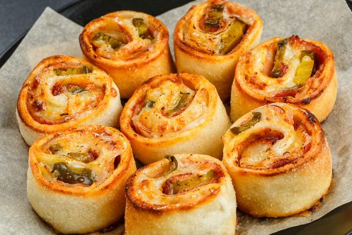 Сырные палочки с беконом и острым соусом Шрирача. 25см